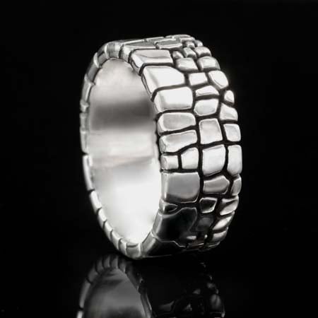 This medium band ring is inspired by the Crocodile which represents fierce protection. Crocodiles waste no movement in their daily lives.