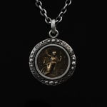 This protective female figure presides over all phases of feminine existence, as well as MARRIAGE and RELATIONSHIPS. She is cast in bronze then inset into a solid sterling silver pendant mount.