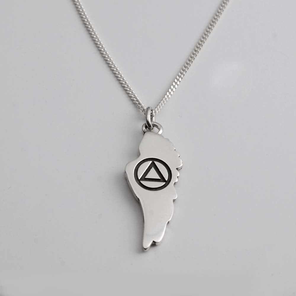 Beautifully sculpted wing, a symbol of freedom with a recovery symbol on the reverse side. Inspiration, close to your heart.