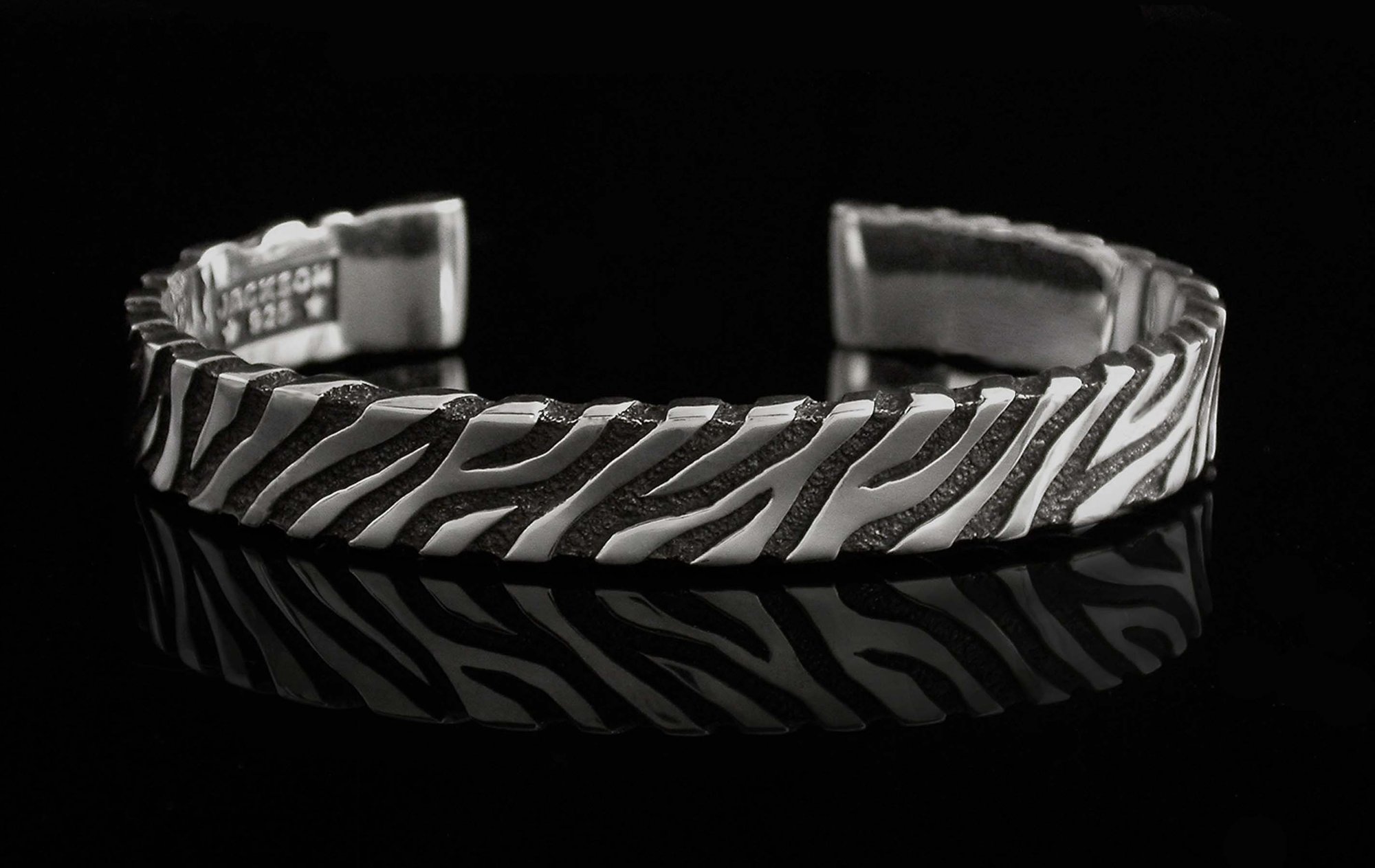 This classic cuff bracelet is inspired by the bold light and dark markings of the Zebra. These patterns dramatically illustrate the blending and balancing of opposites and harmony.